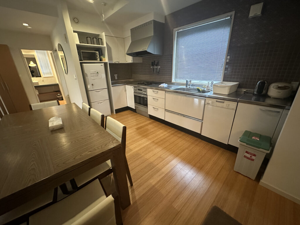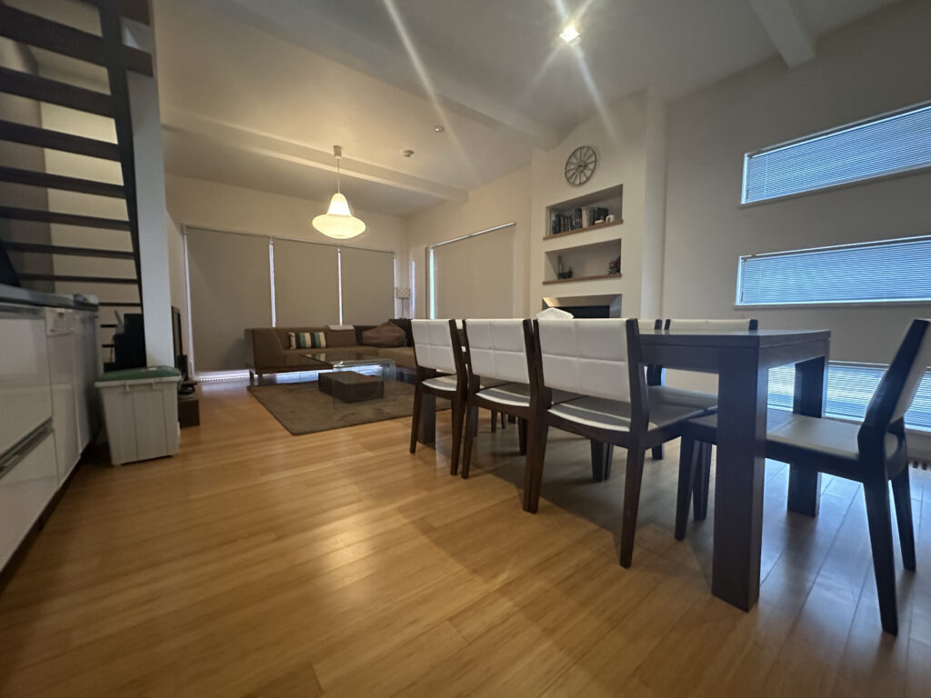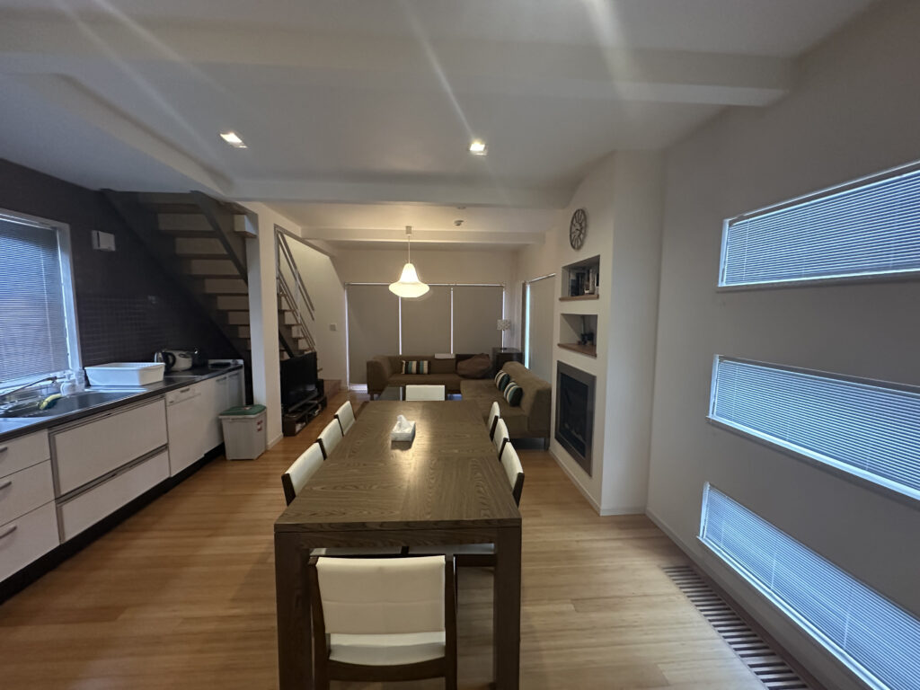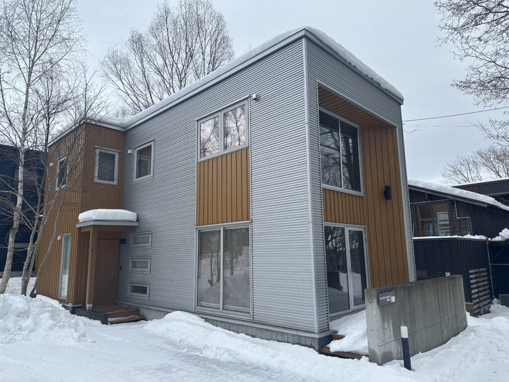 This timber clad house in lower Hirafu is surrounded by beautiful nature, views of which can be fully enjoyed from the large glass windows. This is within walking distance from the centre of Niseko ski resort, and a bus shuttle pick up point is just across the street.